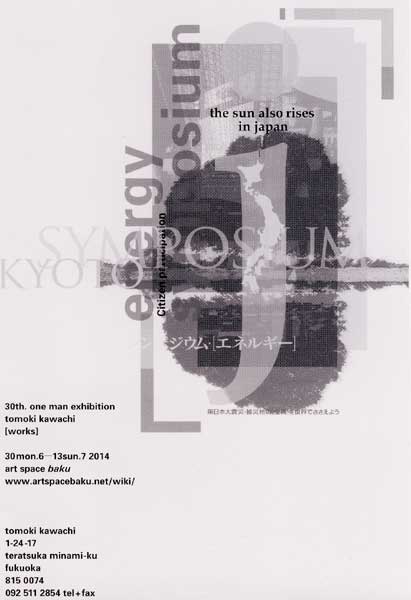 九州産業大学のデザイン学部教授河地氏の今回は、一本の木を選択しそれを中心に置き、背景が異なった写真で合成された作品15点の点数で会場を構成。特定された木が背景によって違った木に見える。多種多様なデザインの組み合わせを楽しんでください。