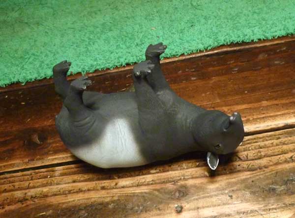 やっと獏の仲間に加わって超嬉しい!前足指4本、後足指3本、腹を出して喜んでいます。この澄み切った可愛い瞳を見てください!益々、増えている獏の仲間。