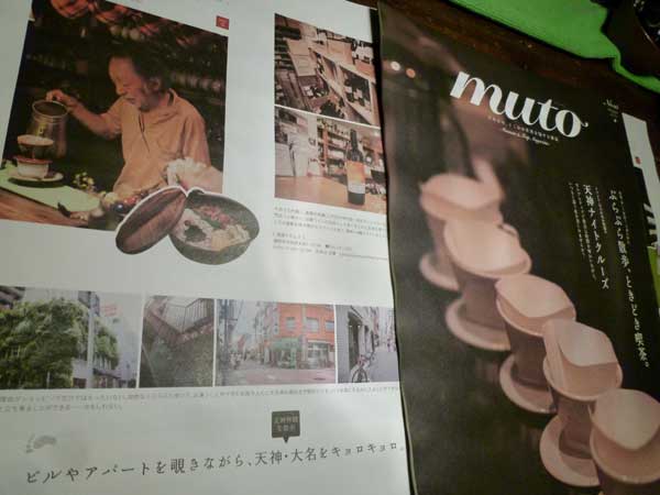 「MUTO」 雑誌MUTOに掲載されました!天神&大名のぶらぶら散歩特集です。A3位の大きさです。ちょっと持ち運びに不自由ですがビジュアル的には迫力あります.美術館などに置いてあるフリーペーパーだ そうです。良かったら!