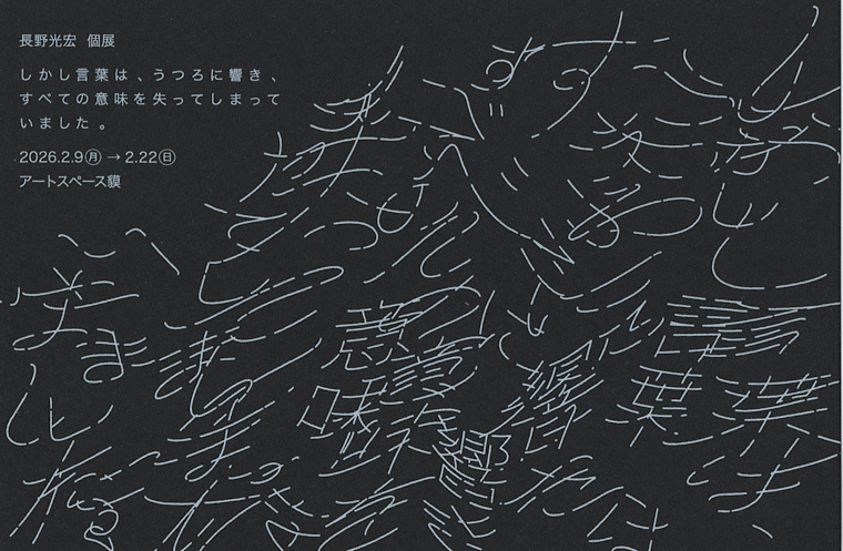 長野光宏展 「しかし言葉は、うつろに響き、すべての意味を失ってしまっていました。」 期間:2026.2.9〜2.22 場所:アートスペース貘
