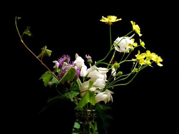 青い薔薇に喜んだのはいいのですが、つけていた水の色が青くなってきた。これはどういうことなのか?どんな花でも生けてる水が花の色になることはないのに!律子さん曰く「青い水を吸い上げさせているだけよ」「何と!そんなことがあっていいのか!」先日もあるメーカーが青い薔薇を開発したと発表したばかりで、遺伝子操作で可能になったのに、青い水を吸わせるアイデアとは庶民的ですな~そういえば値段的には大いに違いますな~!
