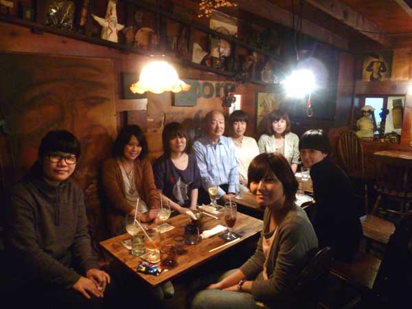 美女に囲まれたダンディな男性は丸尾先生!嬉しそう、楽しそう!団体で若い人達とご飯食べに来てくれます。獏ちゃんの暇を食いつぶしに来てくれる先生!「遊んどったらいかん!遊ばせんよ」と声かけてよく来てくれます。以前は「暇しとうみたいやね!これでもせんね」と言ってカメラをくれました。それ以来