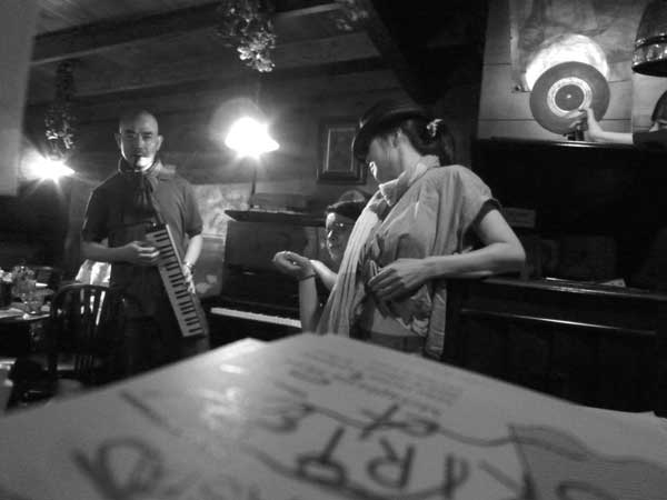 今夜は素晴らしい夜になりました。現代音楽の一人者、河合拓始氏(鍵盤ハーモニカ)奏者の飛び入りで始まったダンスパフォーマンス!舞踏家の千春ちゃん、涼子ちゃん、新部さん、舞踏研究家のテーマさん、アーチストの佐々さん達楽しくパフォーマンス!