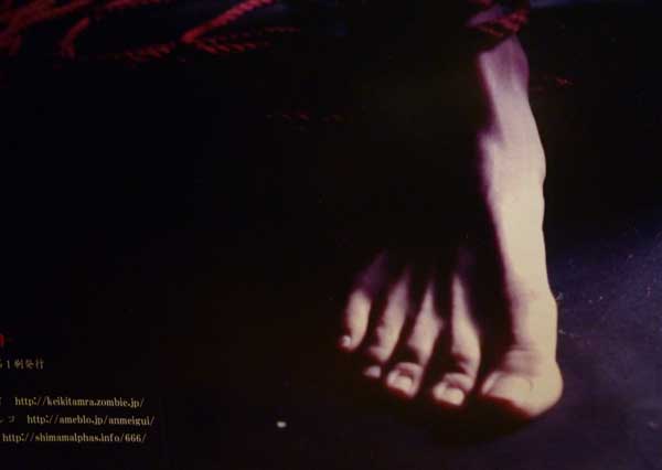 只今、福岡で個展を開催中のキタムラケイちゃんの写真集。裏表紙ですがこの足の写真ががとても好きです。7月29日は屋根裏獏で「おまつとまさる氏」のライブが18時からチケット2300円。(別途500円ドリンク)