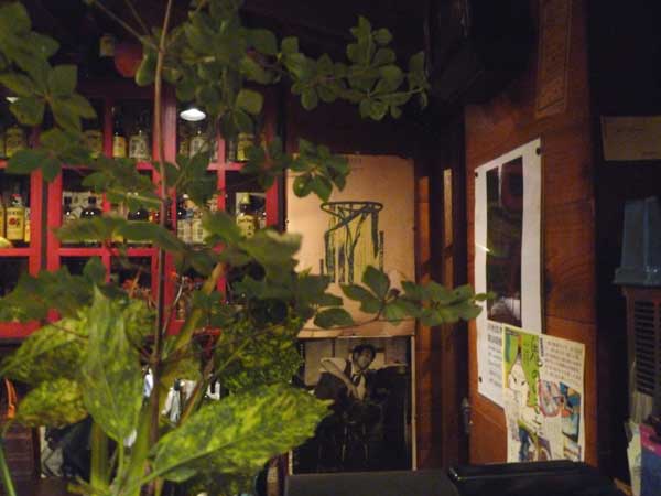 カウンターの緑と元村さんのポスターが妙にマッチしていた。このポスターは20数年前のものですが太宰治の写真の上でいつも澄ましています。今年の元村さんの個展ももうすぐです。9月3日から9月23日。宜しく!
