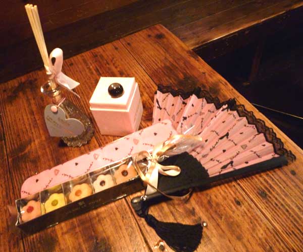 磯邉美香ちゃんの盛り沢山なお土産、香水、扇子、お菓子、そして盛り沢山な面白い土産話!そして楽しい作品を置いて東京に帰って行きました!