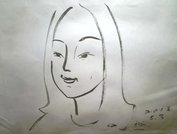 かなり若くなった律子さん!「ごぶつだんのはせがわ」さんの会長が描いた似顔絵!ご本人も若く描きすぎたのか、「ちょっと」と言って、目の上に線を1、2本足されました。