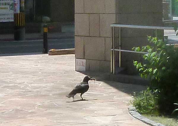 春吉上空で雀がうるさく鳴いて騒いでいるとと思って見あげるとその瞬間、鴉が小雀を襲い咥えて地上に降り食べ始めた。何という修羅場!先日は鳩が集団で喰われたばかり。春吉はジャングルと化したか?それでなくとも雀が年々減っているというにたまりませんな~