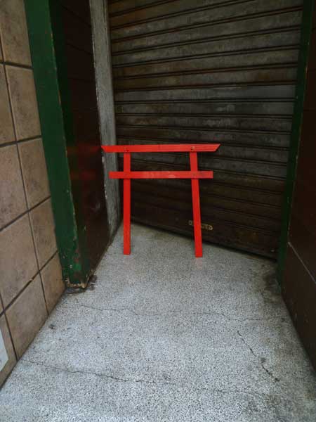 「小便するな」のおまじない!赤い鳥居を置いてみました。よく立ちションされると管理会社に言ってみるとこれを置くしか手がないと親切に持って来てくれました。日本人には祟りを感じても外人に果たして効くのか?道路に投げ捨てられるか?踏み潰されるか?しばしの間、祈るのみ!