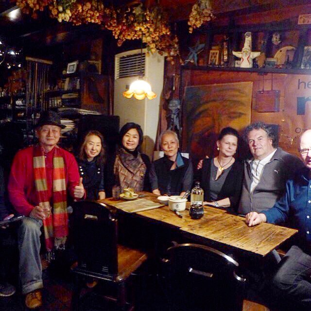 フランス人と結婚した日本人の現代陶芸家。旦那さんも陶芸家。その娘さんご夫妻は南フランスにお城を持っている農家だって!共星の里の柳さんと飲んでます!