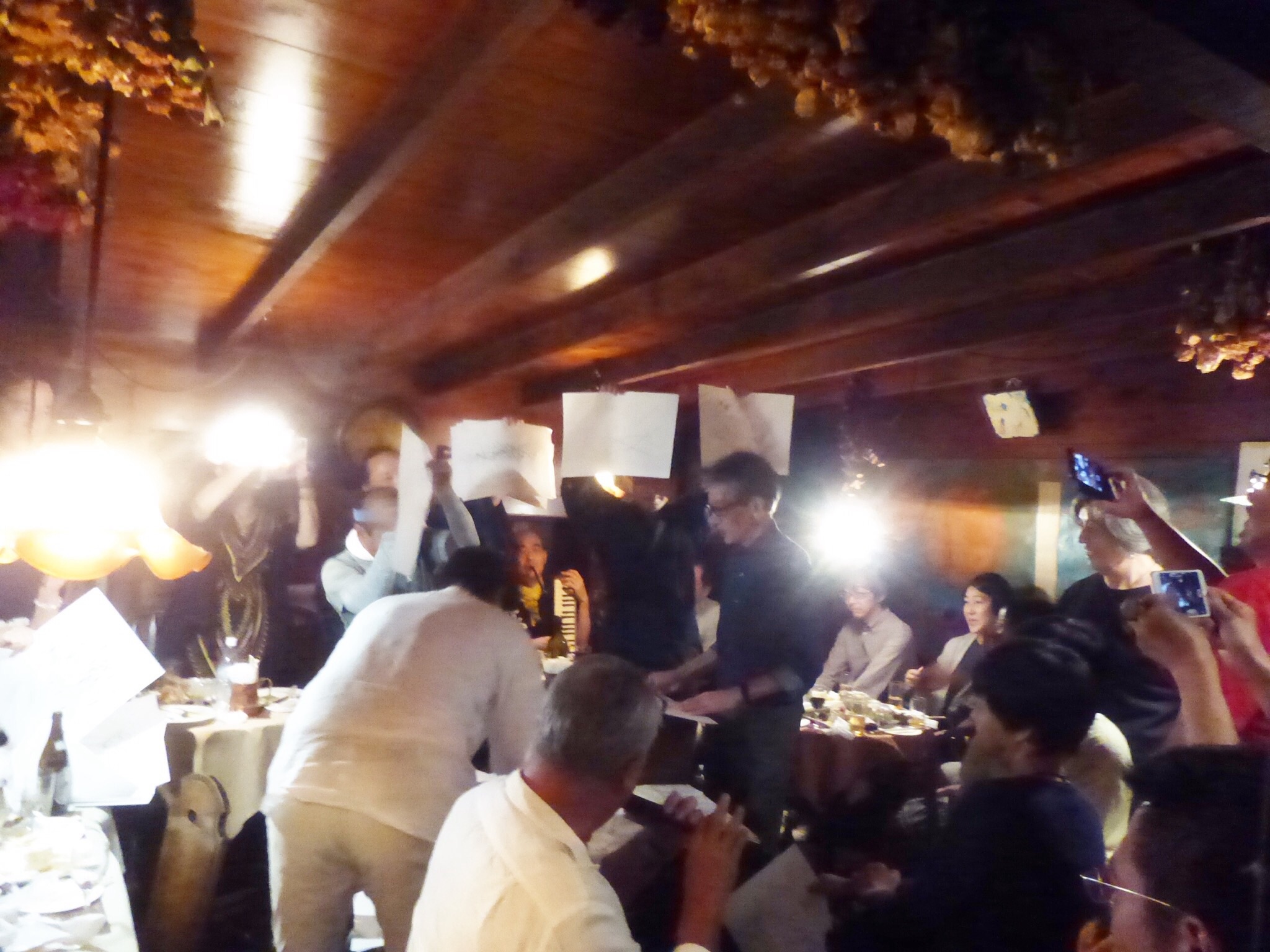 そして打ち上げ❗️立って挨拶している人がガルロさんその右側が原田さん左側の電気の下が黒岩先生^ - ^